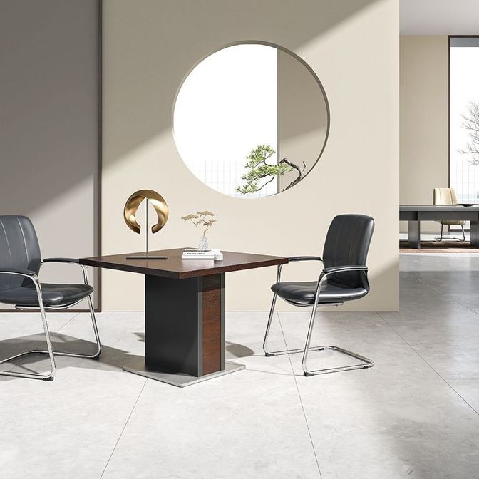 Столешница — МДФ, 60мм, с двухсторонней облицовкой из натурального шпона. Опора-колонна — крашенный МДФ
