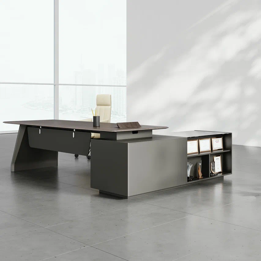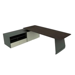 Столешница — МДФ класса E0, размер 2000*980мм, с двухсторонней облицовкой из натурального шпона. Опора, опорная тумба — крашенный МДФ.