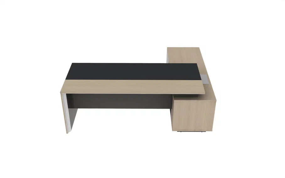 Стол руководителя 2200*1800*750 мм на опорной сервисной левой тумбе.