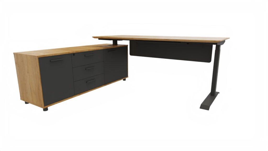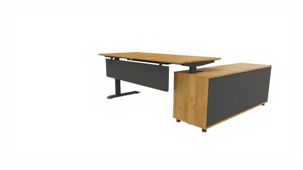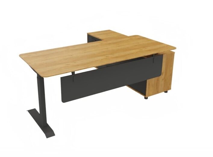 Стол руководителя 2000*1820*720-1220 мм на опорной левой тумбе, регулируемый по высоте.
