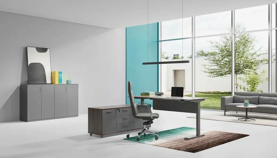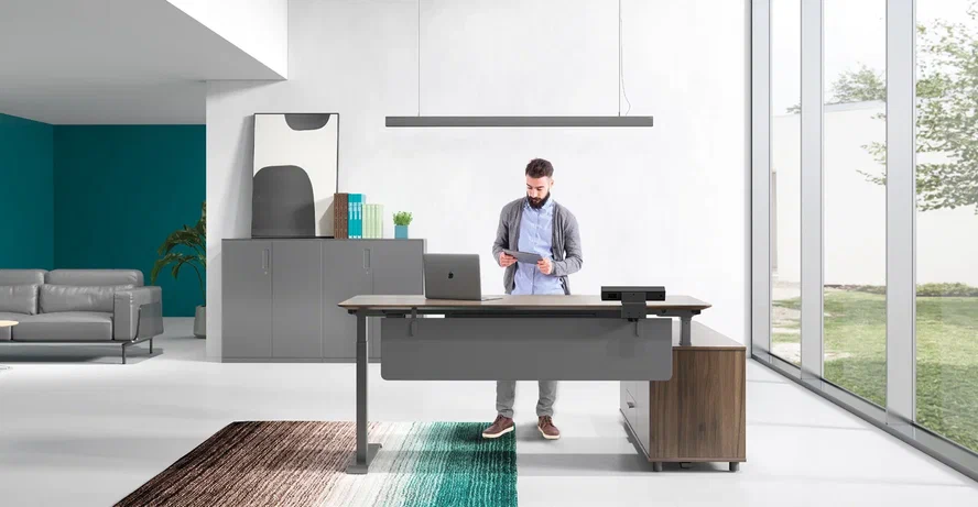 Стол руководителя на опорной левой тумбе с элетроприводом