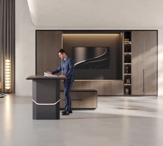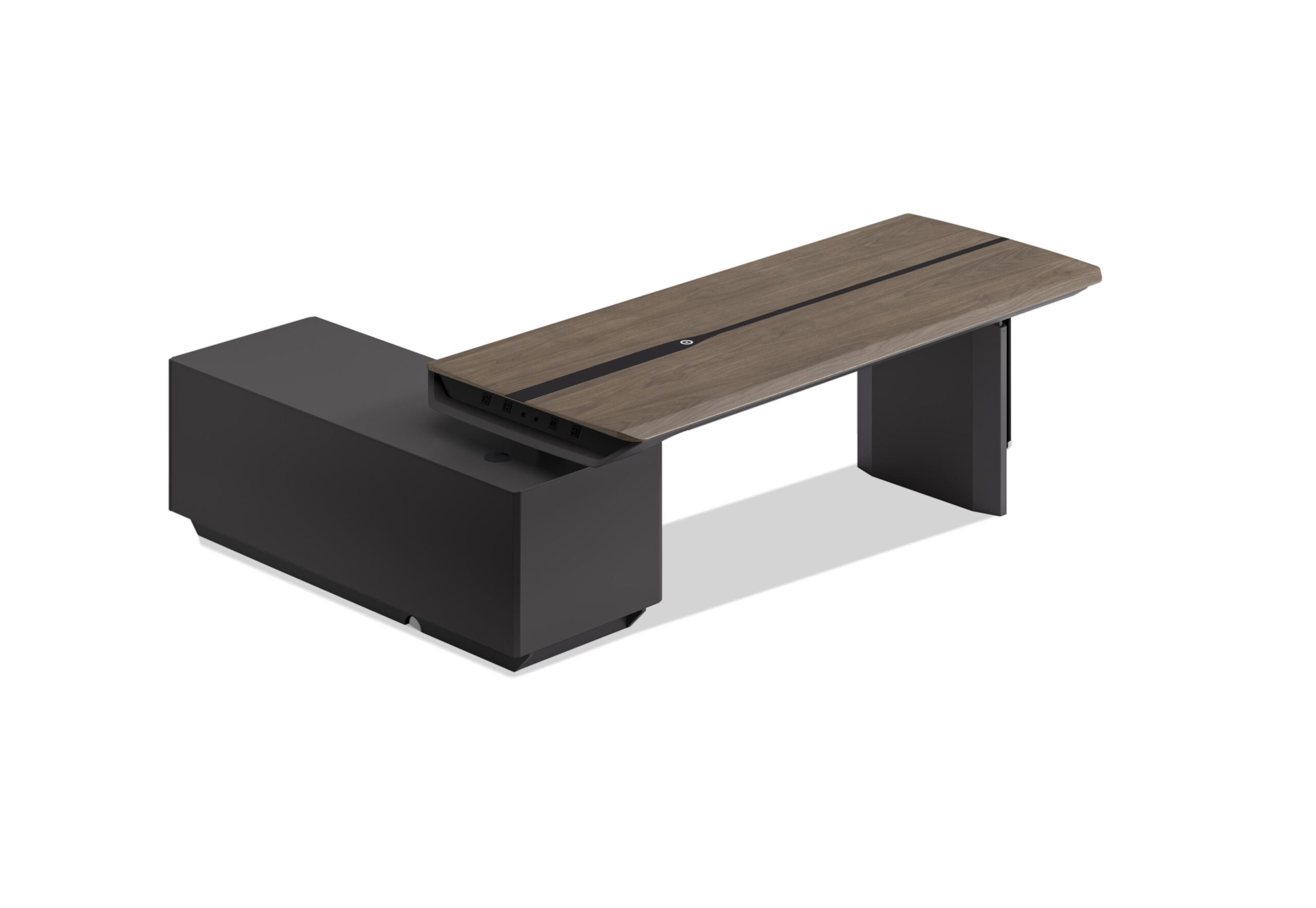Стол руководителя 2180*1850*750-1150мм на опорной правой тумбе. Интеллектуальная подъемная система (включает цифровой дисплей с большим экраном, ручную панель управления, сенсорное управление, функцию напоминания о сидячем образе жизни).