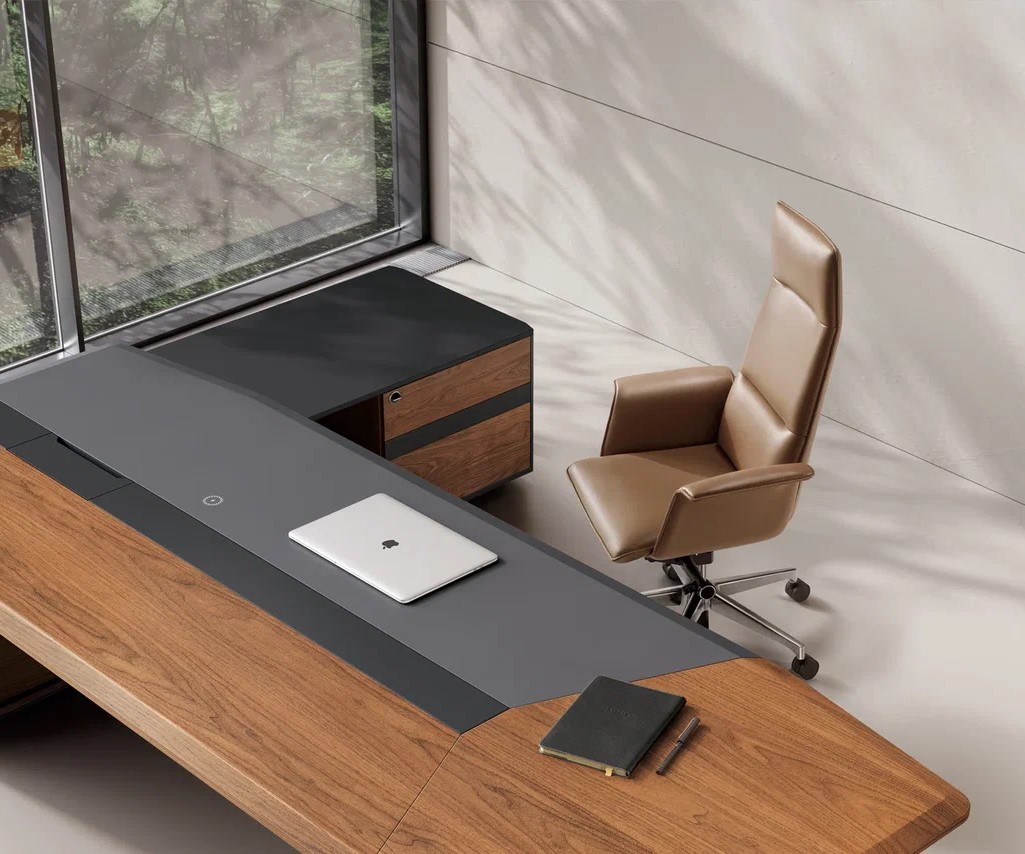 Стол руководителя 2200*2050*760 мм на опорной сервисной правой тумбе.