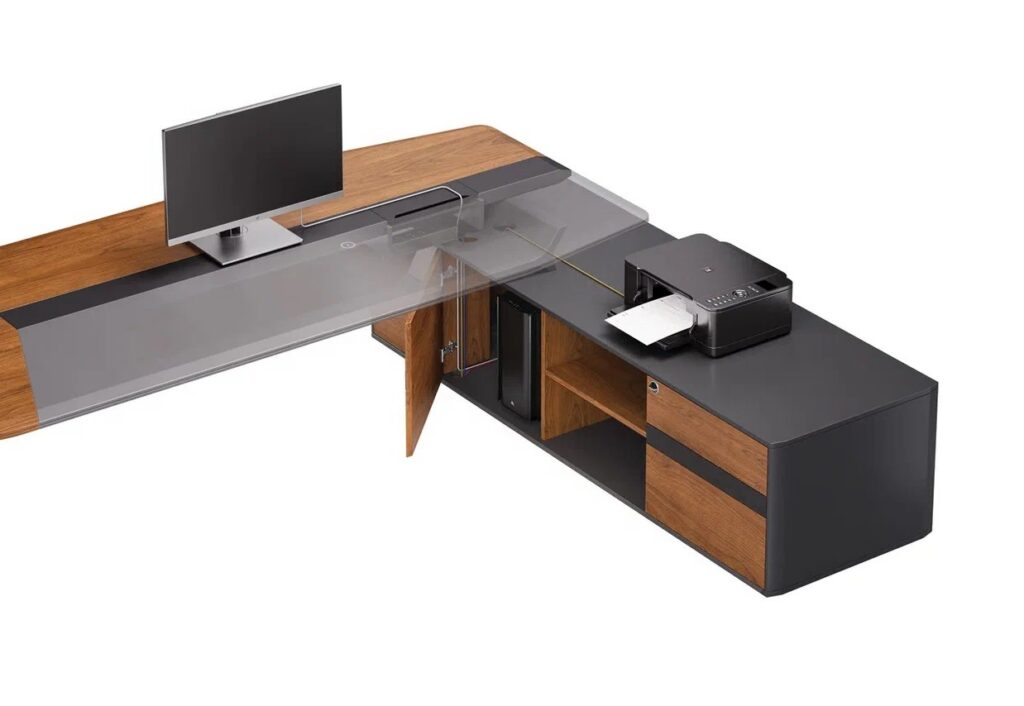 Стол руководителя на опорной правой тумбе с электроприводом