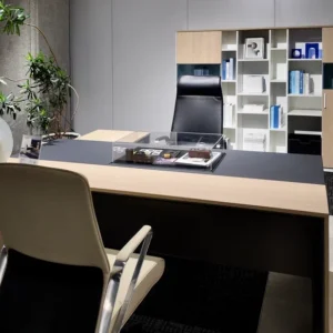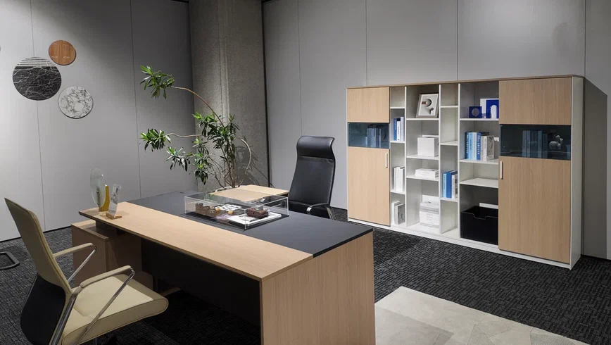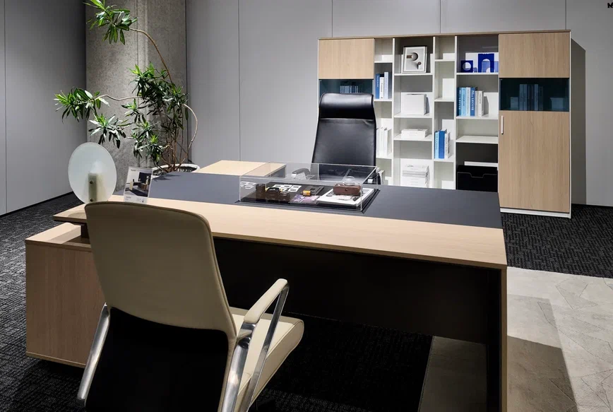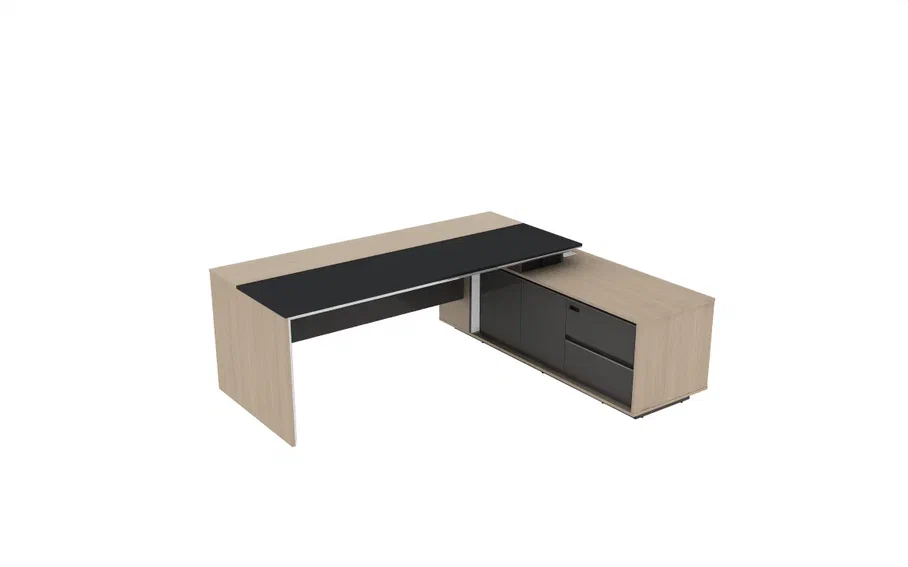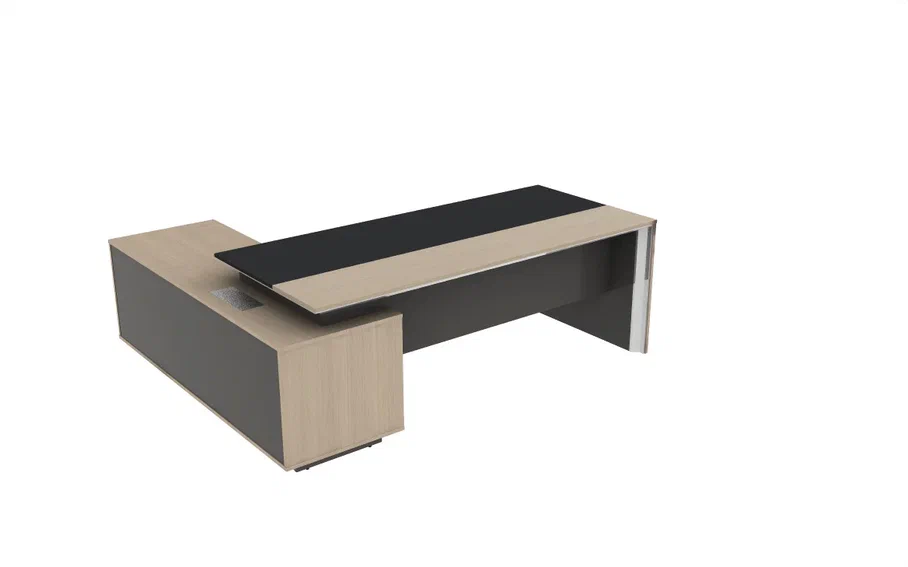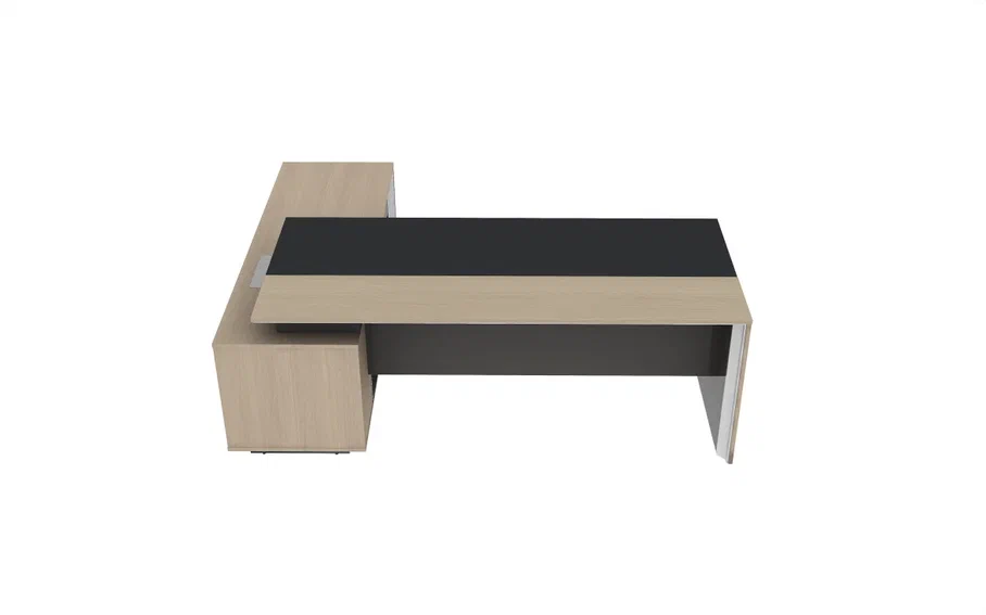 Стол руководителя 2200*1800*750 мм на опорной сервисной правой тумбе.