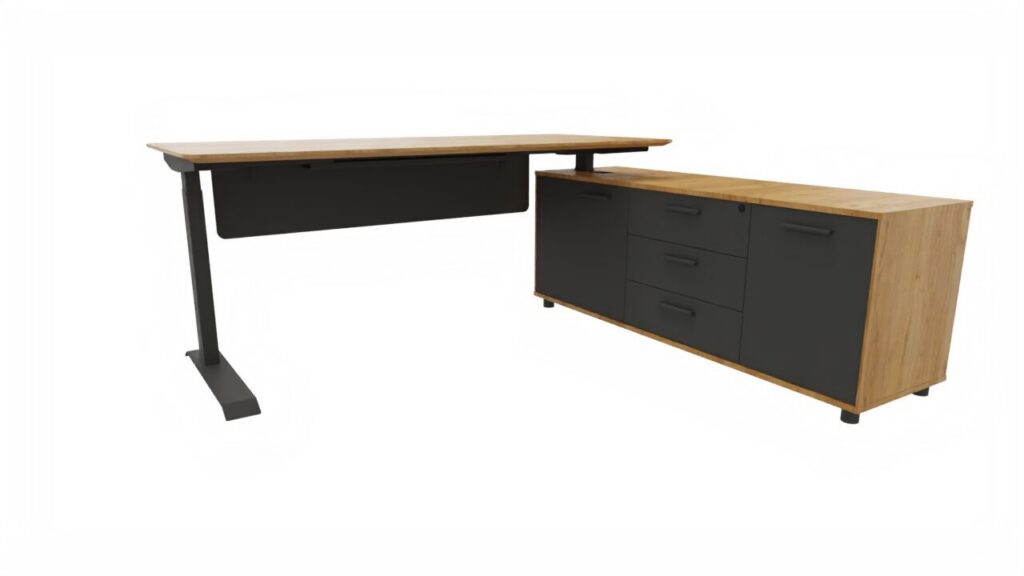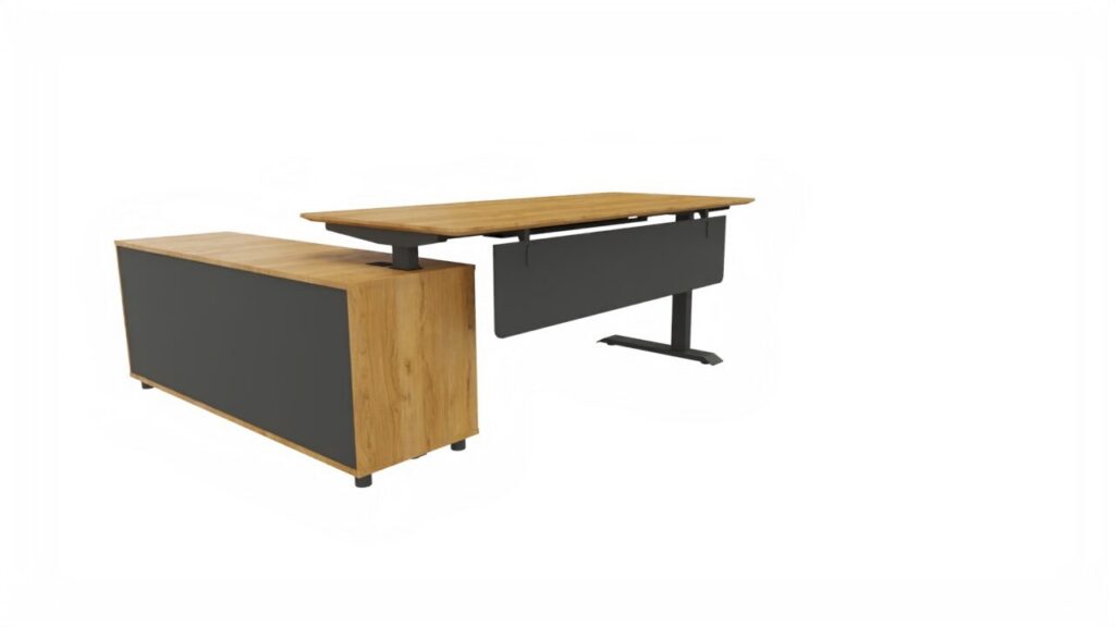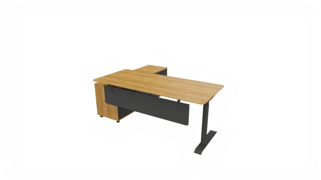 Стол руководителя 2000*1820*720-1220 мм на опорной правой тумбе, регулируемый по высоте.