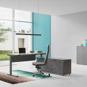 Стол руководителя 2000*1820*720-1220 мм на опорной правой тумбе, регулируемый по высоте.