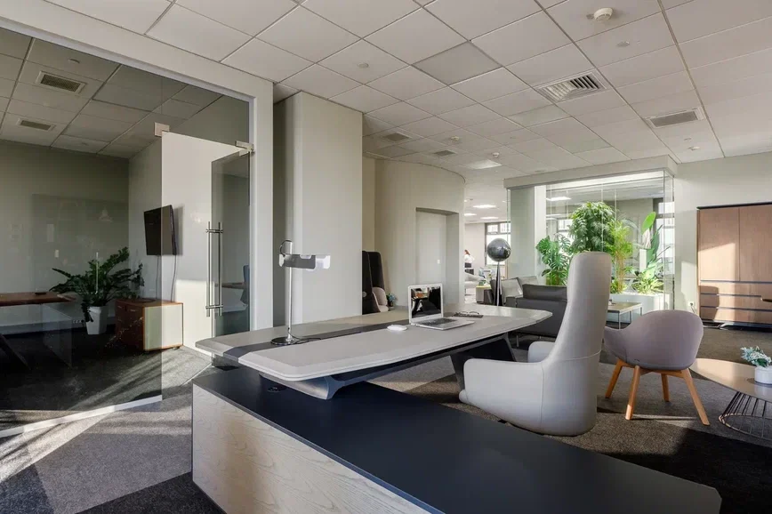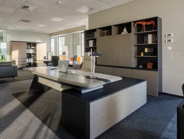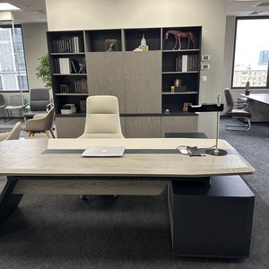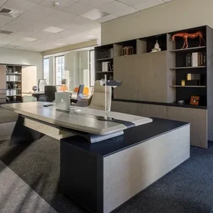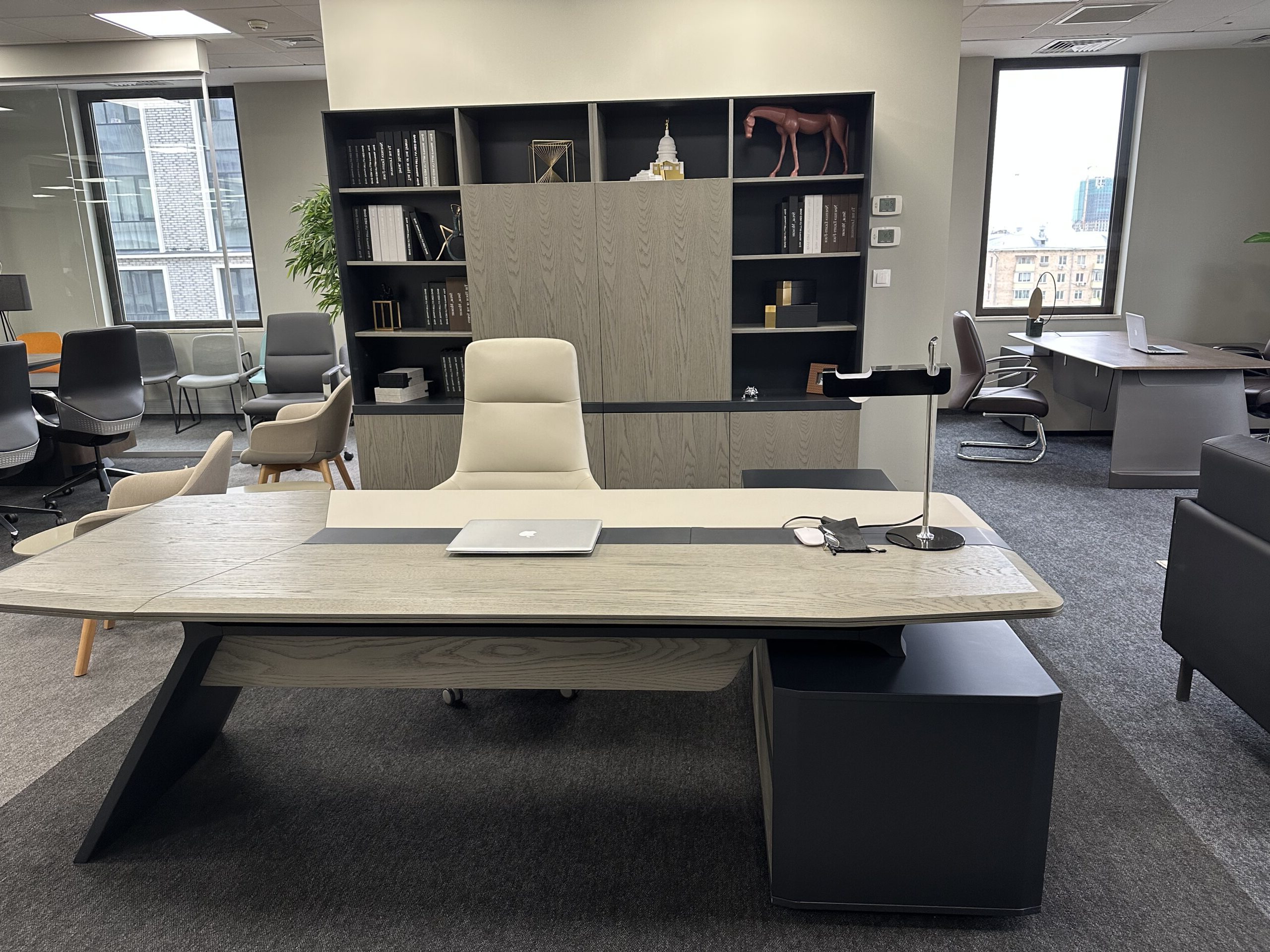 Стол руководителя 2200*2050*760 мм на опорной сервисной левой тумбе.