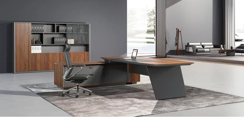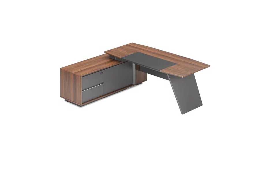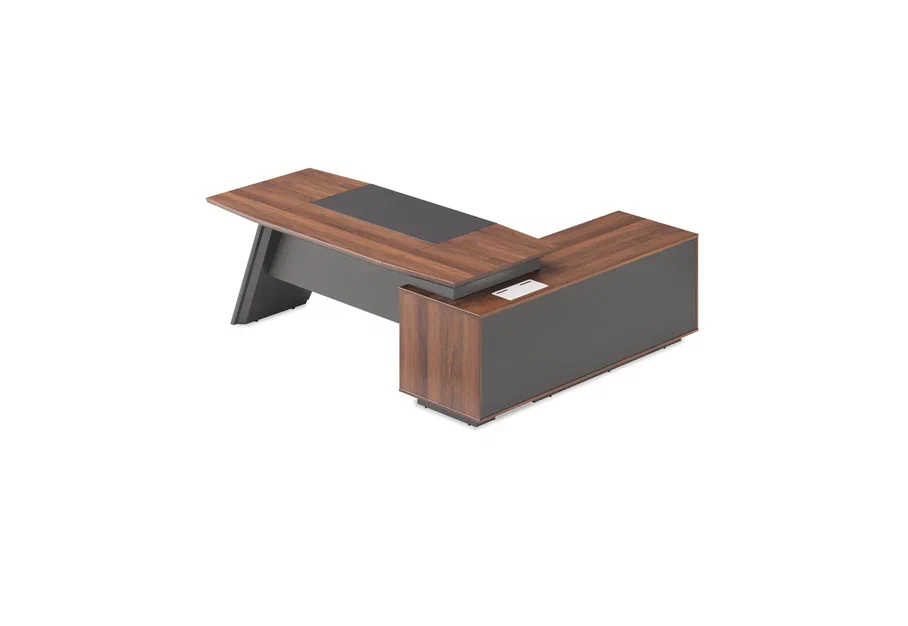 Стол руководителя 2200*1850*750 мм на опорной сервисной левой тумбе.