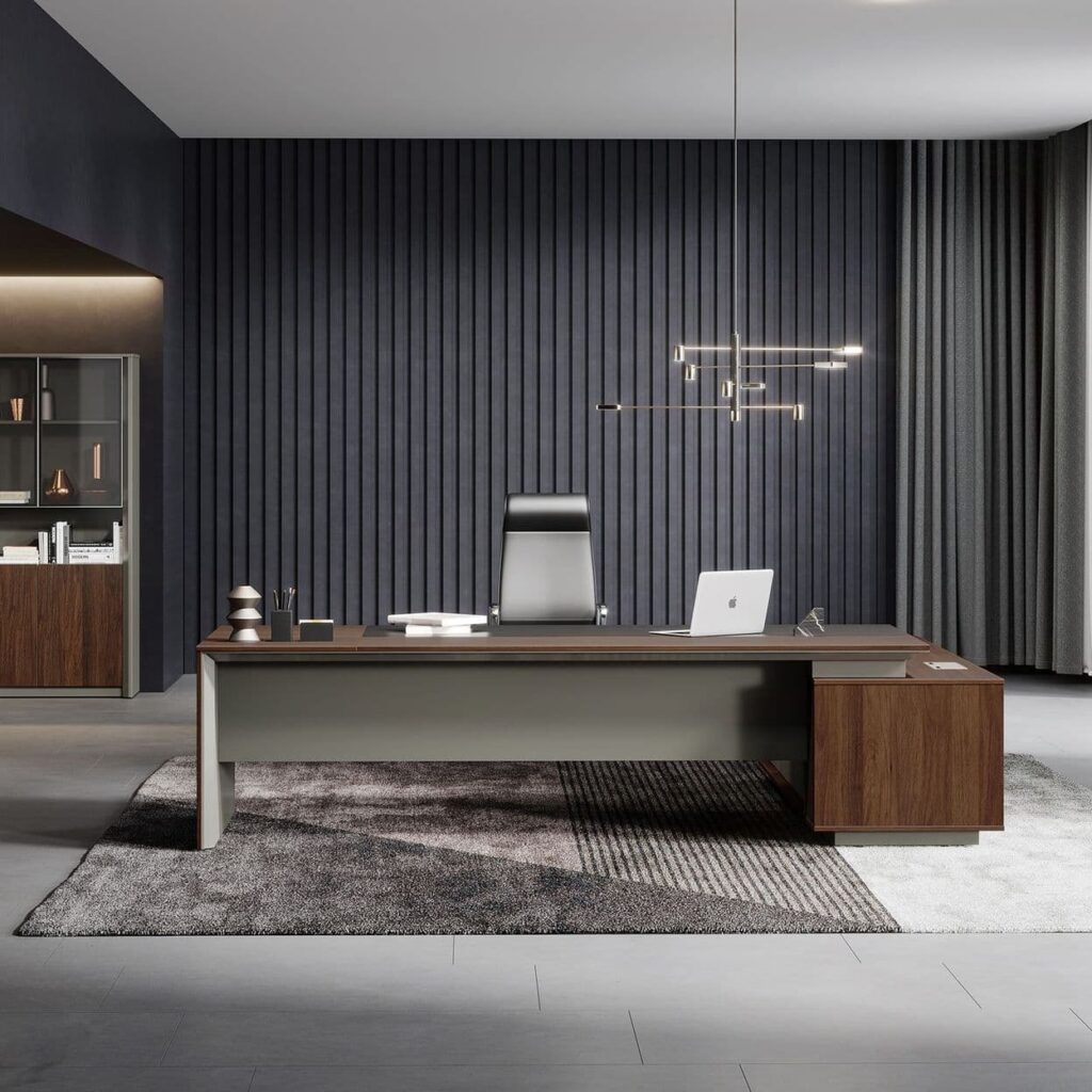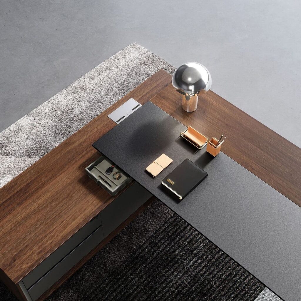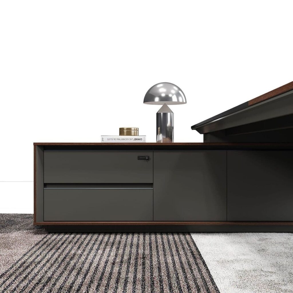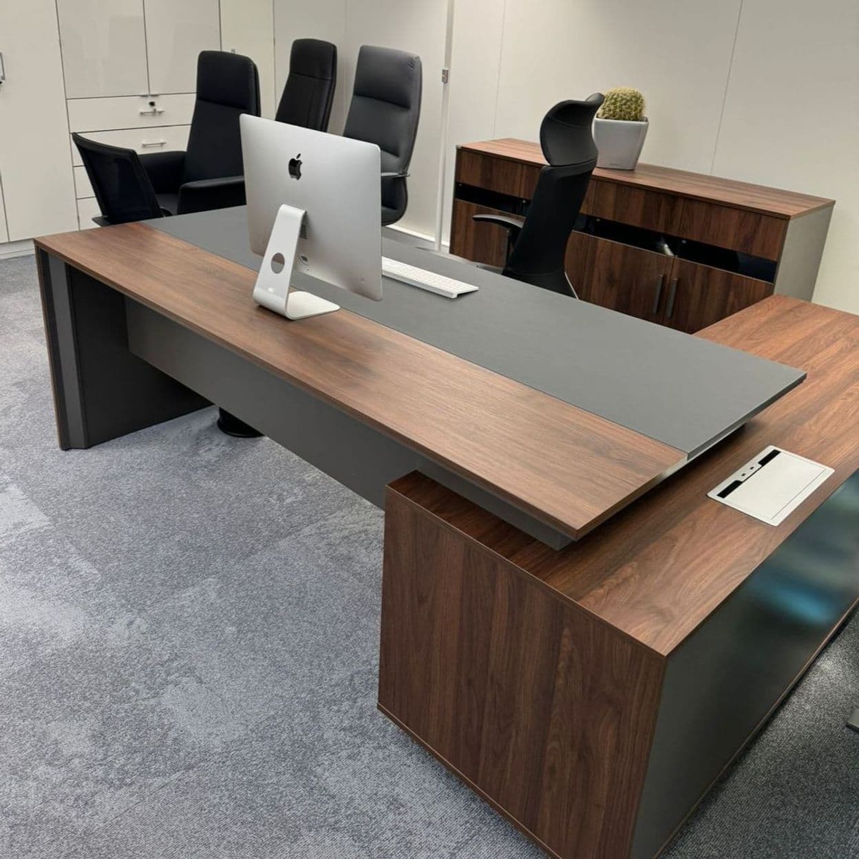 Стол руководителя 2200*1800*750 мм на опорной сервисной левой тумбе.