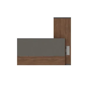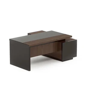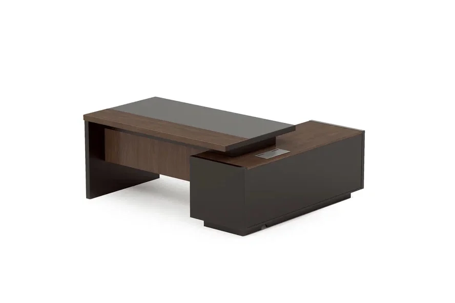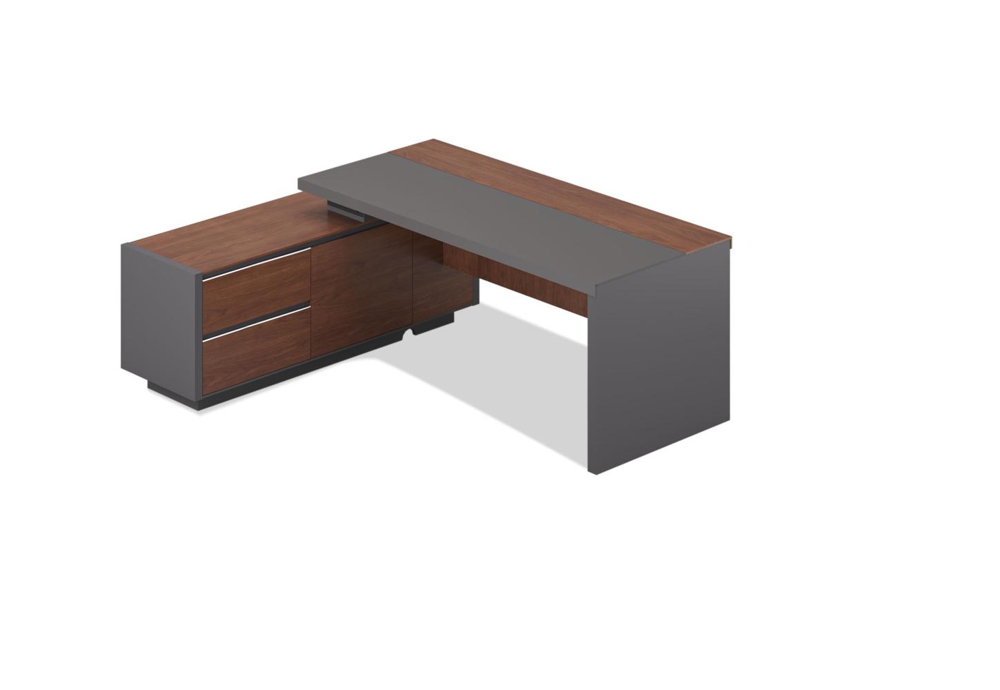 облицовкой из натурального шпона 2000*900мм. Одна опора-панель выполнена из МДФ E0 класса с матовым лаковым покрытием. Опорная тумба — топ и фасады облицованные шпоном, цоколь и корпус тумбы — крашенный МДФ. 2 распашные двери, 2 выдвижных ящика. Центральный замок На лючке 2 шт USB, нет электрификации .