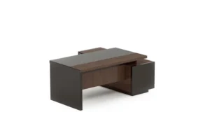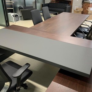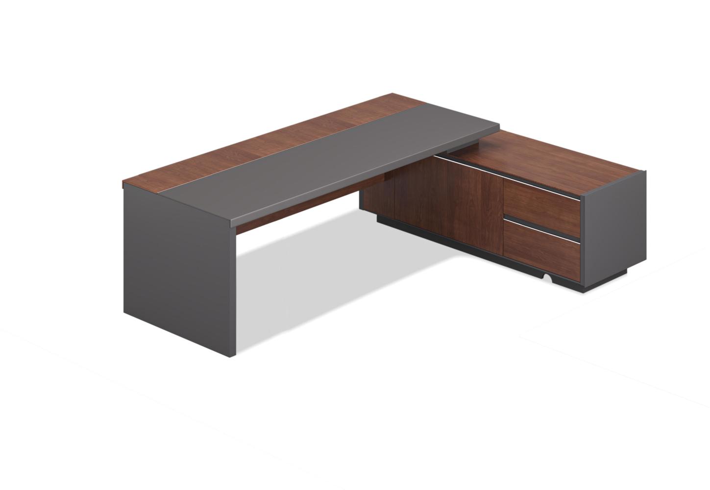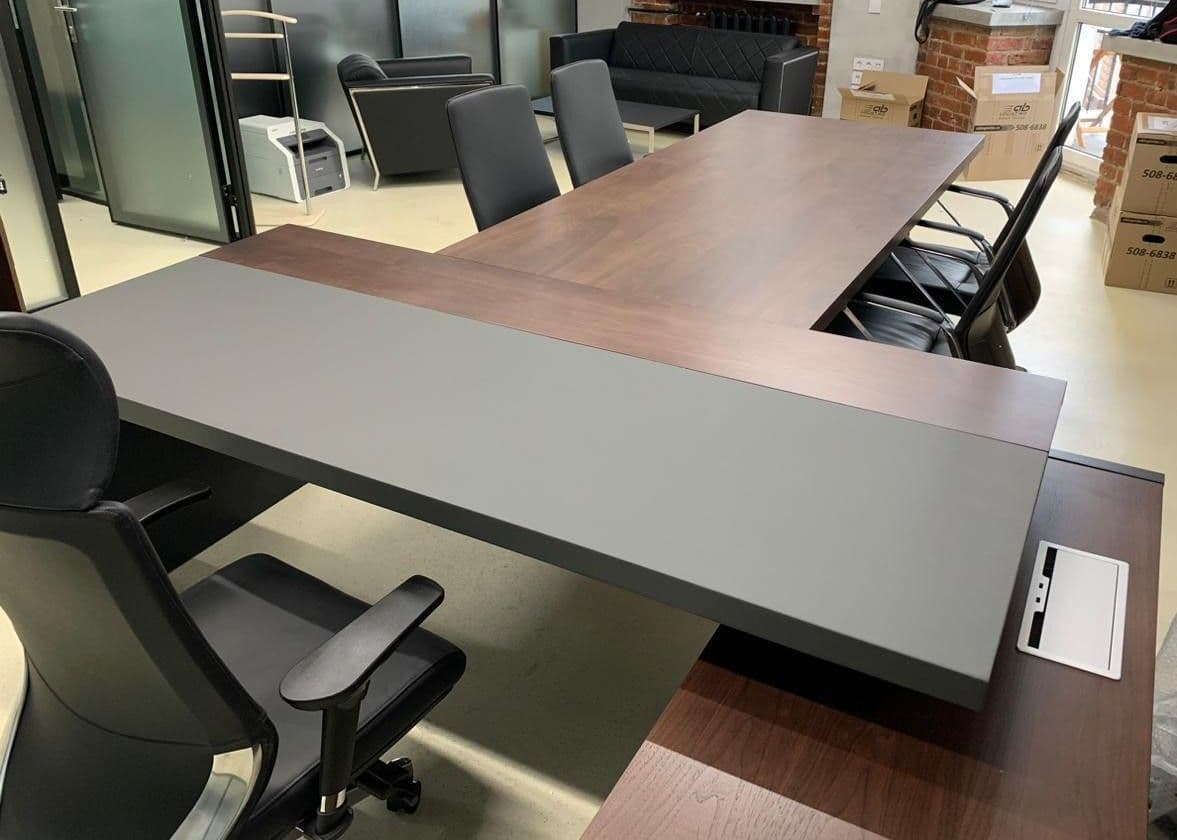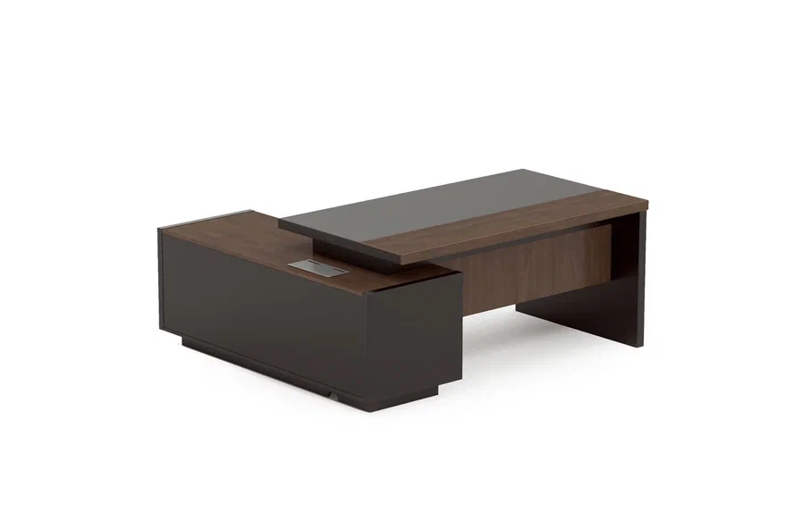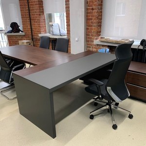 облицовкой из натурального шпона 2000*900мм. Одна опора-панель выполнена из МДФ E0 класса с матовым лаковым покрытием. Опорная тумба — топ и фасады облицованные шпоном, цоколь и корпус тумбы — крашенный МДФ. 2 распашные двери, 2 выдвижных ящика. Центральный замок На лючке 2 шт USB, нет электрификации .